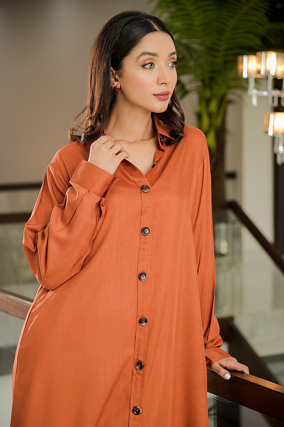 Description: Rust Trendy Dress