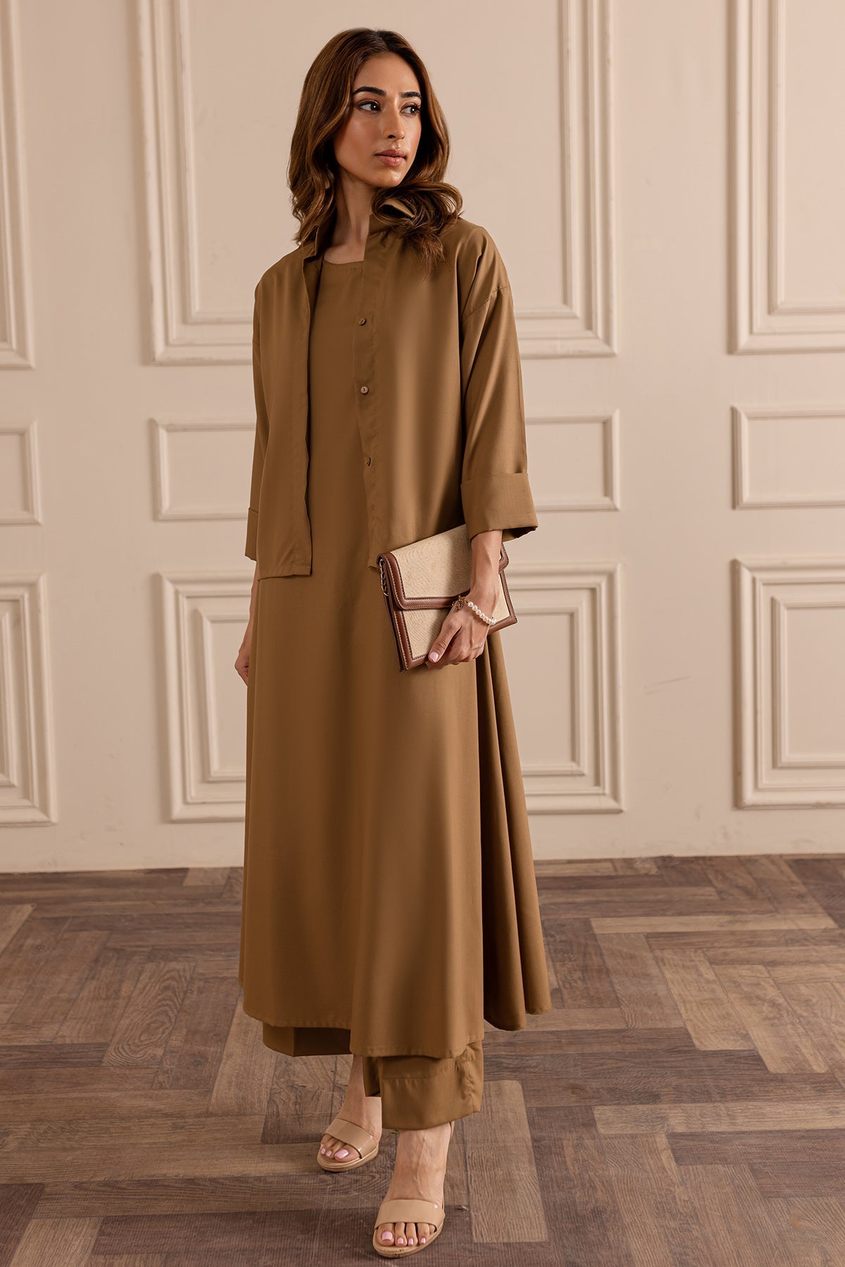 Description: Pastel Brown Layered Dress